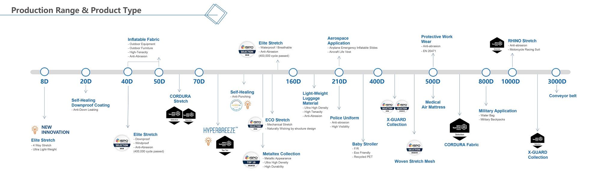تنتج U-Long أقمشة في مجموعة واسعة تتراوح بين 15D-3000D لمختلف التطبيقات بما في ذلك الملابس والمعدات الناعمة والاستخدام الصناعي. عندما تصمم الأفكار الأولية لخط منتجاتك ، فكر في التفاصيل الأداء التي يمكن أن تناسب المنتج النهائي الخاص بك. هذه العناصر ستشكل المنتج النهائي وستزيد قيمة منتجك. ابدأ بتطبيق النسيج للحصول على مجموعة العينات لأن الفئة تحتوي على أقمشة مناسبة موصى بها لك.